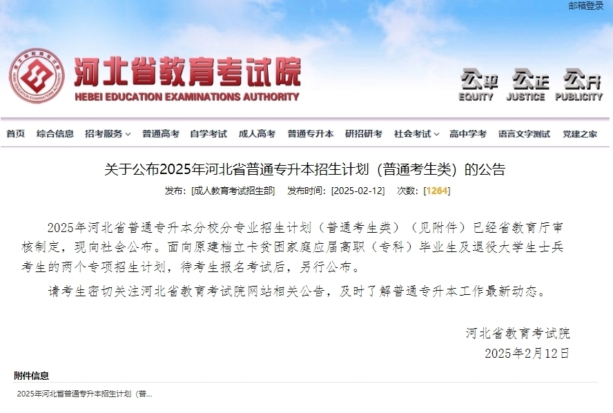 關(guān)于公布2025年河北省普通專升本招生計(jì)劃(普通考生類)的公告